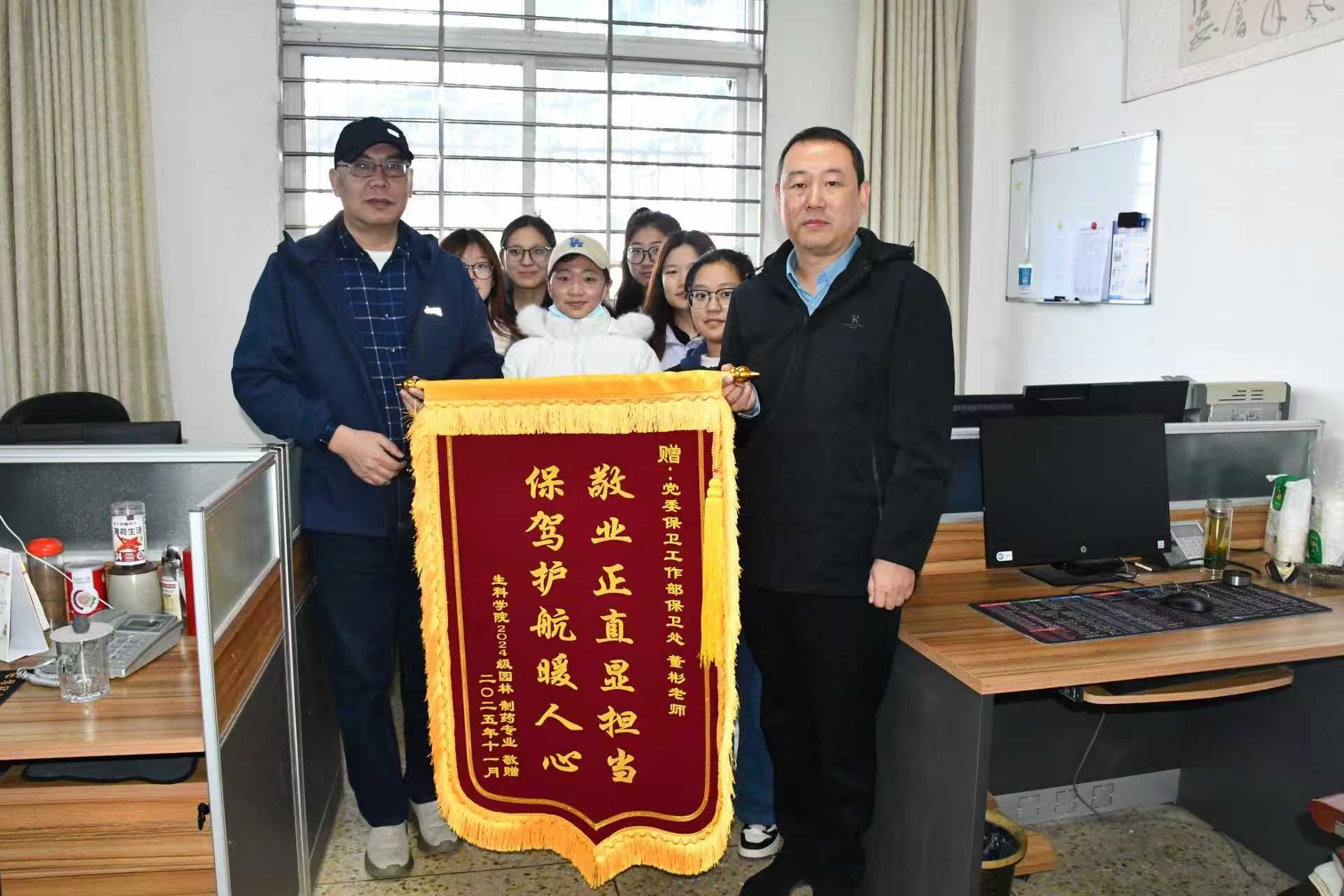 (通讯员 张成哲)近日,我校保卫处治安科收到学生代表送来的一面写有“敬业正直显担当 保驾护航暖人心”的锦旗,以感谢科室教职工为学生解决实际困难的暖心举措。