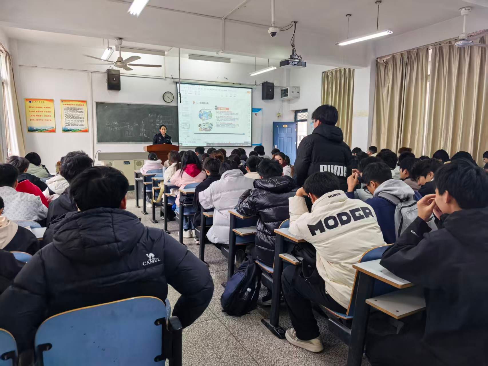 结合活动期间我校发生的诈骗案件,邀请湖滨派出所驻校民警孙瑞泽深入各学院开展反诈宣传进班级活动。同时,利用上下课人员流动高峰期积极开展反诈宣传进校园活动。