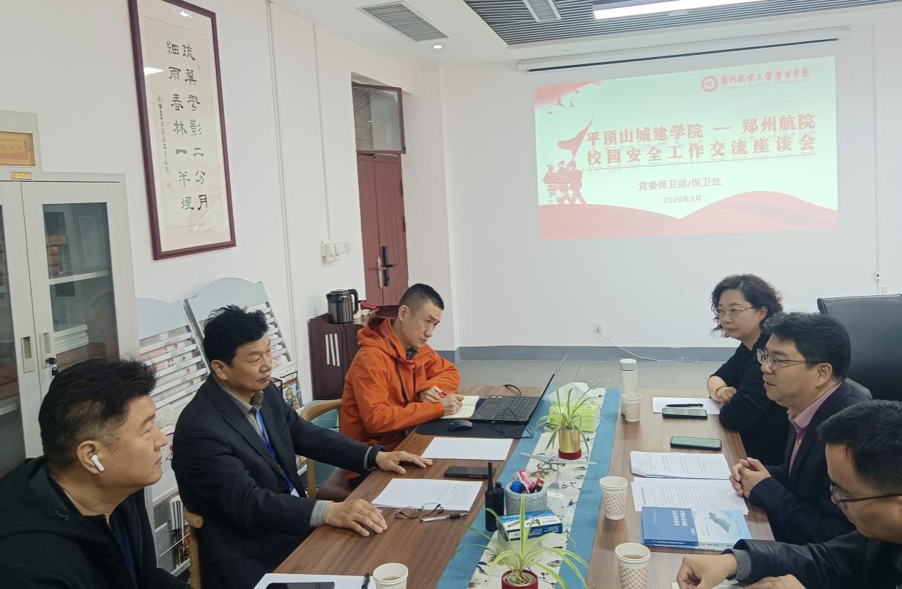3月25日至26日,学校安全管理处处长马步伟、网络技术中心副主任魏新红,安全管理处副处长郭亚举、石磊等一行6人赴华北水利水电大学、郑州航空工业管理学院开展调研交流活动。