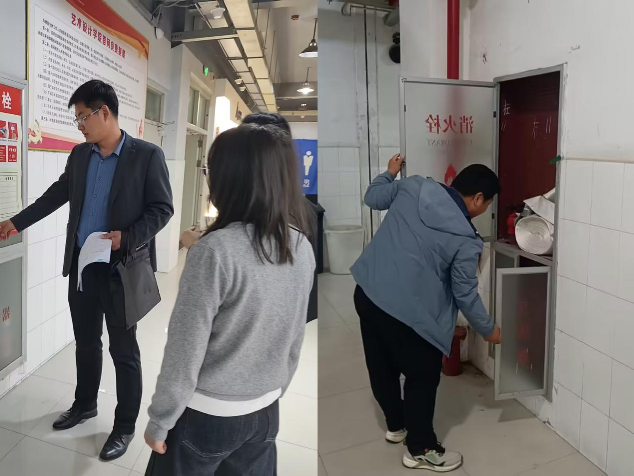 本次专项检查共成立4个督查组,深入各学院、各部门,围绕安全管理、建筑外窗、安全疏散、培训演练、消防设施五个方面开展系统性排查。一是安全管理方面,重点核查各单位消防管理制度、消防教育培训及演练开展情况。二是建筑外窗隐患方面,聚焦教学楼、宿舍等重点楼宇,检查关键区域是否存在影响疏散逃生和灭火救援的违规障碍物。三是安全疏散方面,查验疏散门开启状态,以及应急照明、疏散指示标志的运行情况。四是培训演练成效方面,检查应急预案制定及演练落实情况。五是消防设施配置方面,排查各类消防设施完好性,核查日常维护记录。