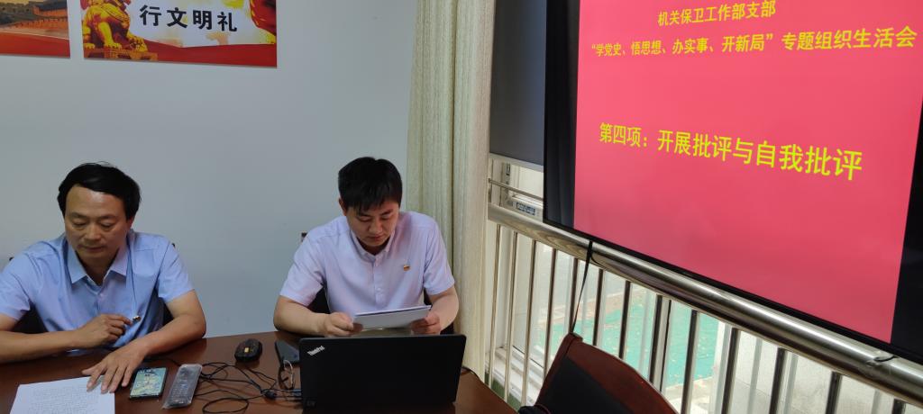 (通讯员 陈德林)按照学校党委安排,6月25日上午,机关保卫工作部支部在行政楼102会议室召开“学党史、悟思想、办实事、开新局”专题组织生活会。会议由党支部书记何燚主持。