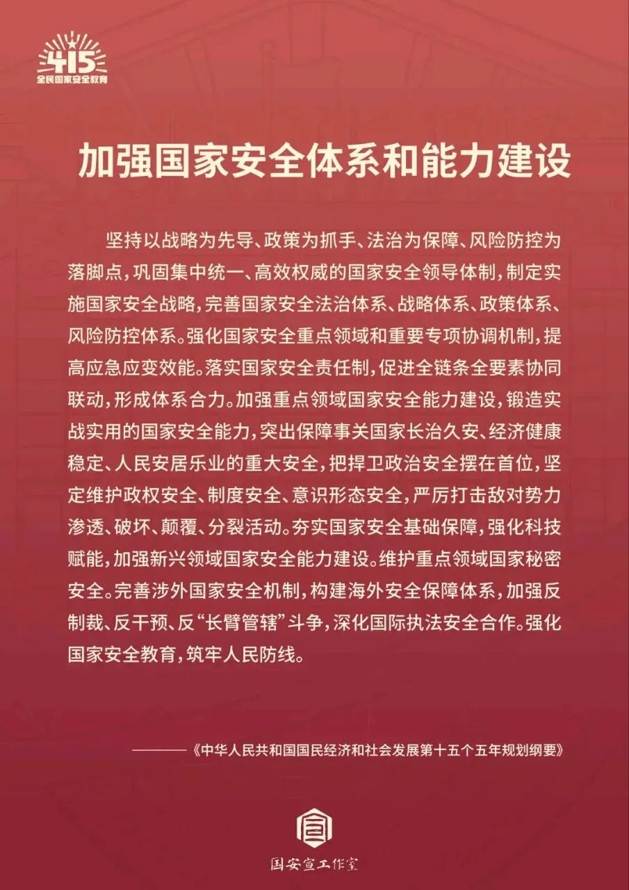 2026年4月15日是第十一个全民国家安全教育日,今年全民国家安全教育日主题是“统筹发展和安全 护航‘十五五’新征程”。一组海报带你读懂总体国家安全观,明晰国家安全范畴,知晓自身安全义务增强安全意识,提升防范能力。